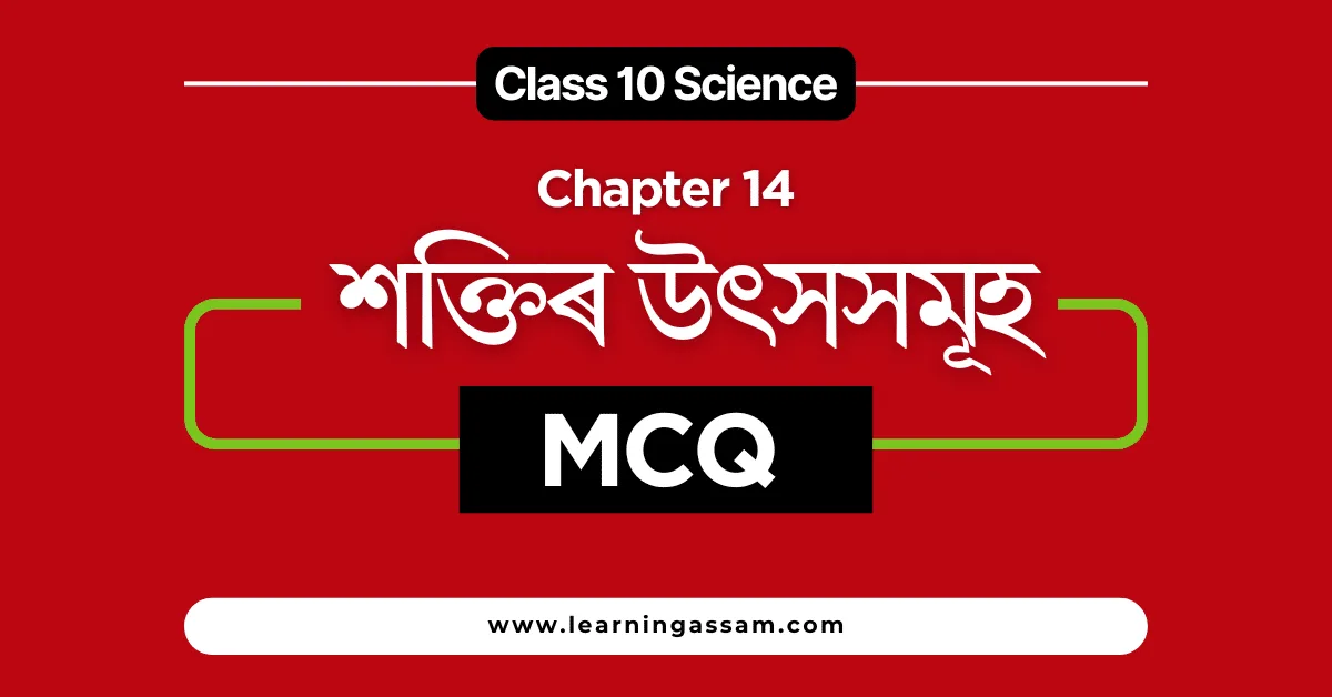 Class 10 Science Chapter 14 MCQ Assamese Medium (শক্তিৰ উৎসসমূহ Class 10 MCQ) is available here. Students can practice these SEBA Class 10 Science Chapter 14 MCQ Assamese Medium, prepared per the SEBA syllabus (2024 – 2025) and NCERT curriculum. All the MCQ questions in this SEBA Class 10 Science Chapter 14 MCQ in Assamese with Answer are designed according to the latest HSLC exam pattern. All the objective questions are presented here with their answers. It will help students to score the highest marks in the HSLC exam. We have uploaded all the SEBA Class 10 Assamese Medium Science Chapter 14 MCQ (শক্তিৰ উৎসসমূহ Class 10 MCQ) questions and answers carefully.