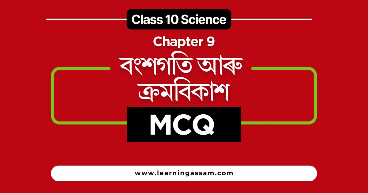 Class 10 Science Chapter 9 MCQ Assamese Medium (বংশগতি আৰু ক্ৰমবিকাশ MCQ) are available here. Students can practice these SEBA Class 10 Science Chapter 9 MCQ Assamese Medium with Answer, prepared per the SEBA syllabus (2024 – 2025) and NCERT curriculum. All the MCQ questions in this SEBA Class 10 Science Chapter 9 MCQ in Assamese are designed according to the latest HSLC exam pattern. All the objective questions are presented here with their answers. It will help students to score the highest marks in the HSLC exam. We have uploaded all the SEBA Class 10 Assamese Medium Science Chapter 9 MCQ (বংশগতি আৰু ক্ৰমবিকাশ MCQ) questions and answers carefully.